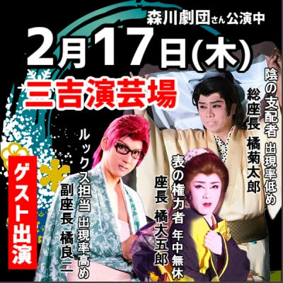 森川劇団公演中の三吉演芸場にゲスト出演致します。