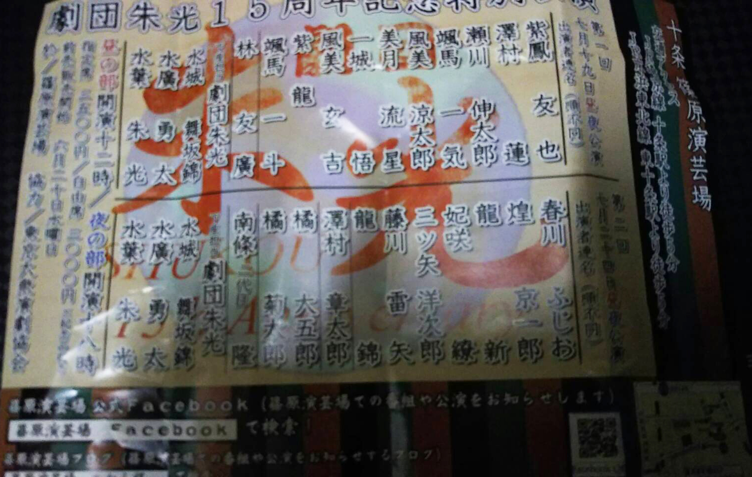 劇団朱光15周年記念特別公演 7/24 総座長、三代目