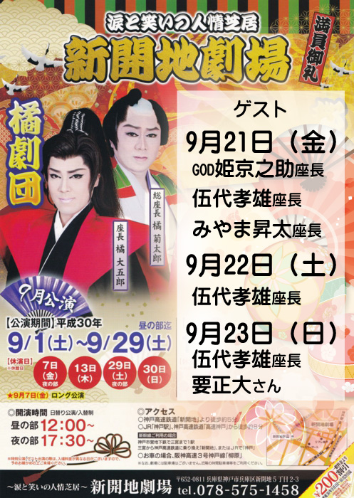 9/21・22・23 ゲスト 2018年09月15日 お知らせ 0 9月21日 (金)GOD姫京之助座長伍代孝雄座長みやま昇太座長9月22日 (土)伍代孝雄座長9月23日 (日)伍代孝雄座長要正大さんです。 pic.twitter.com/1H9QaXCgRT— 伍代 孝雄 (@Takao_Godai) 2018年9月3日 [0回]PR