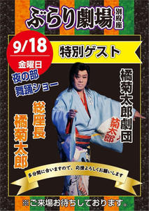 9/18・ 9/19 総座長 「ぶらり劇場 別府座」に ゲスト出演