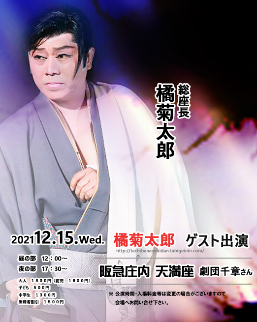 「劇団千章」さん公演中阪急庄内 天満座へゲスト出演致します。