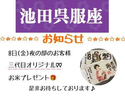 11/8 夜のみ 三代目オリジナルお米プレゼント